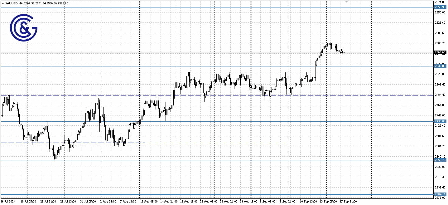 На четырехчасовом графике XAU/USD технический сценарий предполагает восстановление цены в диапазоне 2542,00 - 2659,99. Однако повышение волатильности на фоне решения ФРС может привести к обновлению ценовых ориентиров.